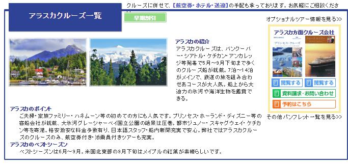ご夫婦・家族ファミリー・ハネムーン等の初めての方にも人気です。プリンセス・ホーランド・ディズニー等の客船会社が就航、大氷河グレーシャーベイ国立公園の絶景は圧巻!!。都市ジュノー・スキャグウェイ・ケチカン等を寄港。格安激安な料金多数有り、日本語スタッフ・船内新聞充実で安心です。弊社ではアラスカクルーズのクルーズのみ、航空券付き・添乗員付きツアーも充実です。