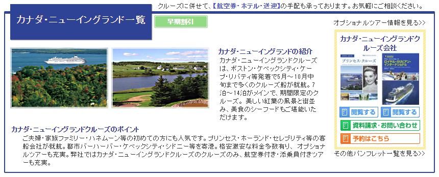 ご夫婦・家族ファミリー・ハネムーン等の初めての方にも人気です。プリンセス・ホーランド・セレブリティ等の客船会社が就航。都市バーハーバー・ケベックシティ・シドニー等を寄港。格安激安な料金多数有り、 オプショナルツアーも充実です。弊社ではカナダ・ニューイングランドクルーズのクルーズのみ、航空券付き・添乗員付きツアーも充実しています。