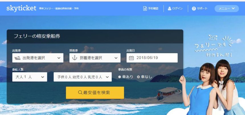 スカイチケットフェリーでは全国約20社からフェリーの料金やプランの比較・予約が可能です。